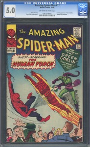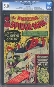 First appearance of Green Goblin (Norman Osborn) First meeting of Hulk and Spider-Man. White Pages.
